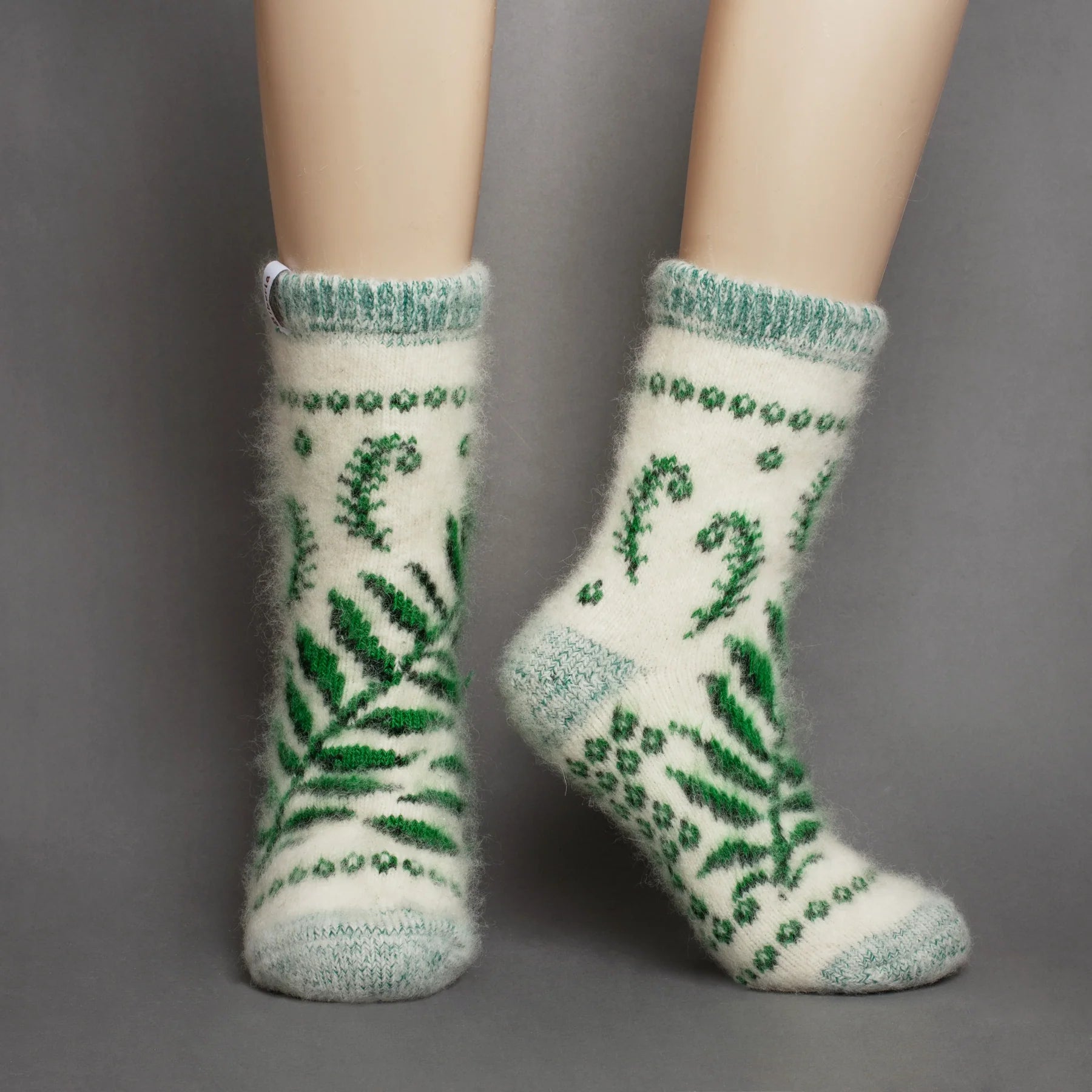 Siberia Spirit Women's Fiddle-Leaf Forest Merino Wool Crew Socks