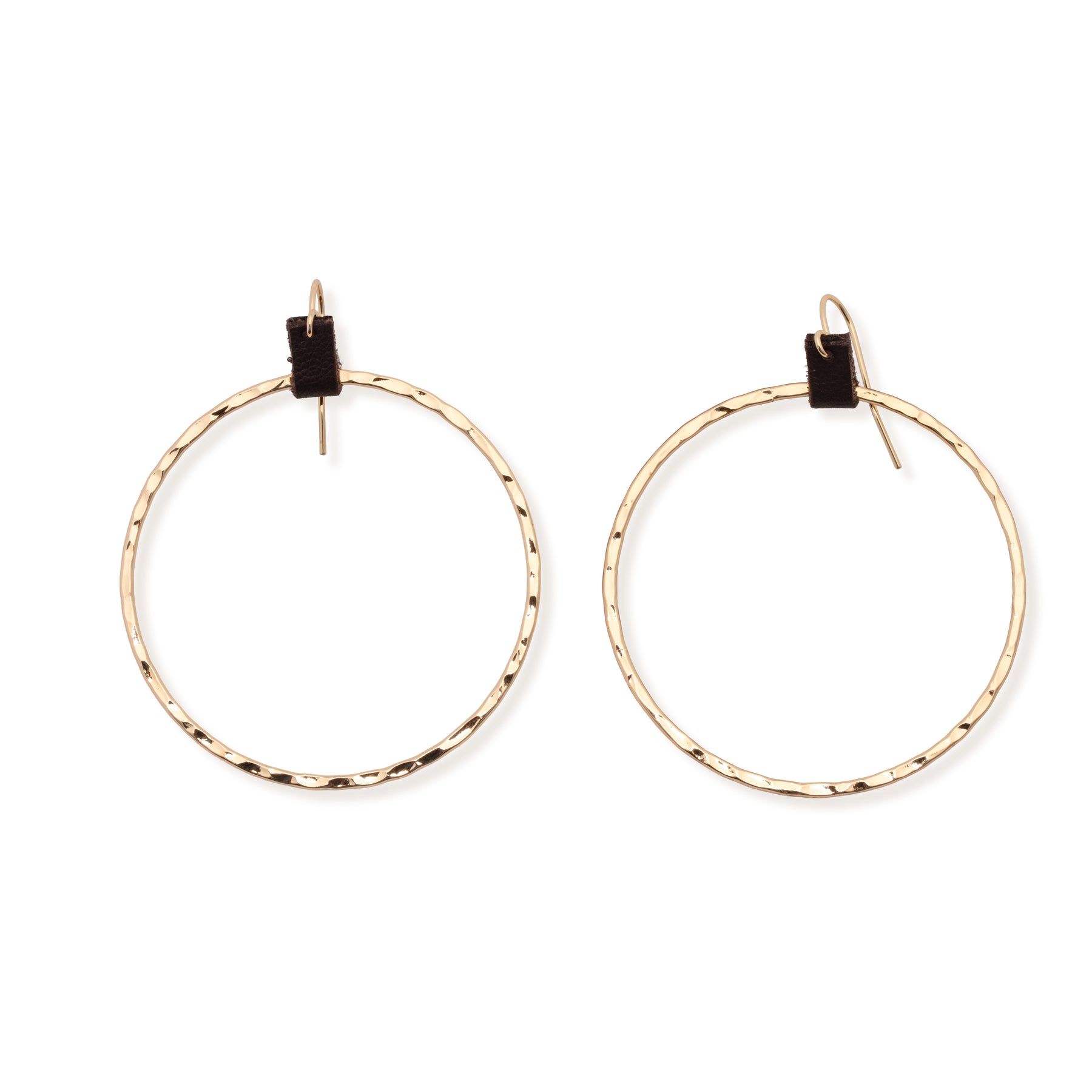 Sleek and sophisticated, these Leslie Curtis West hammered hoop earrings combine timeless elegance with modern minimalism. Crafted with supple leather accents draped over gleaming gold or silver-toned hoops, they strike the perfect balance between statement and subtlety. The 2" diameter makes them noticeable without overwhelming your look, while the textured metal finish adds visual interest and depth. Whether you're dressing up for an evening out or elevating your everyday style, these versatile earrings work seamlessly with virtually any outfit. A go-to piece that feels both polished and effortlessly cool.