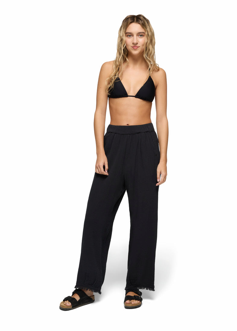 These barrel-leg pants are made with organic cotton gauze that's soft, lightweight, and breathable. The relaxed fit and stretchy waistband make it easy to pop them on over your swimsuit or pair them with a crop top for a night out. Double pockets at the front and back provide easy storage for your essentials, and details like the fringed hem and crinkle fabric elevate this beachside staple.
