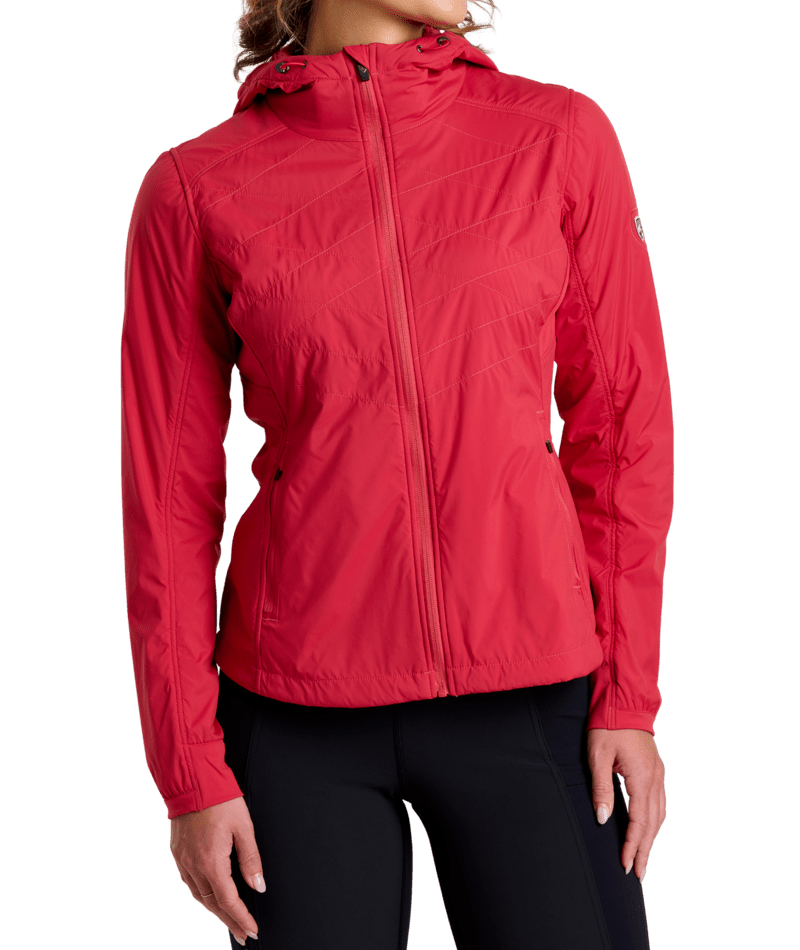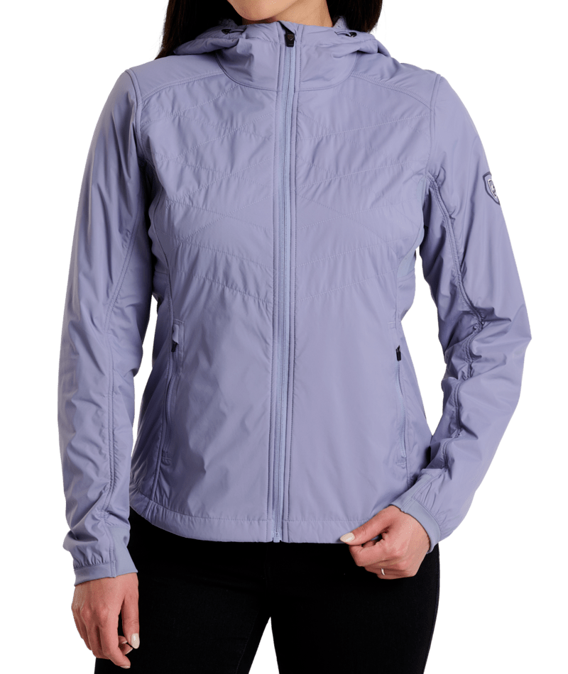 Windproof yet highly breathable. Warm yet lightweight. Water-resistance with stretch. THE ONE™ Women's Hoody features KÜHL’s temperature-regulating Aeroknit technology for breathable comfort and performance. Underarm knit gussets provide stretch and release excess heat during high output activity. Our articulated design directly results from comprehensive study of a body in motion. There is only one!